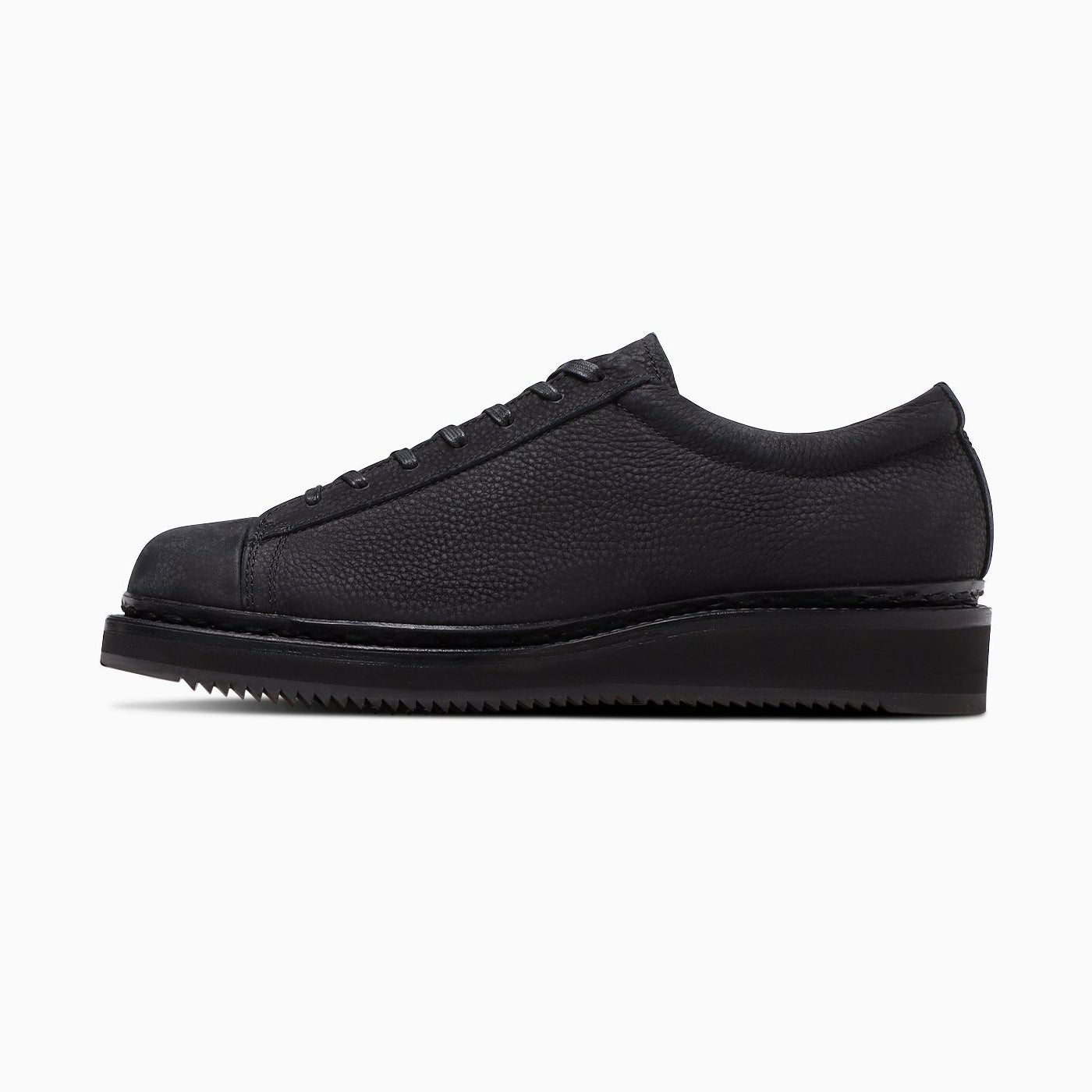 REGAL Shoe & Co. とのコラボレーション第2弾は、イタリアンタンナーによる良質な質感のオイルヌバックを使用したレザースニーカー。艶を抑えたマットなオールブラックのカラーリングは、今までのスニーカーにはない独創的なムードを放ちます。